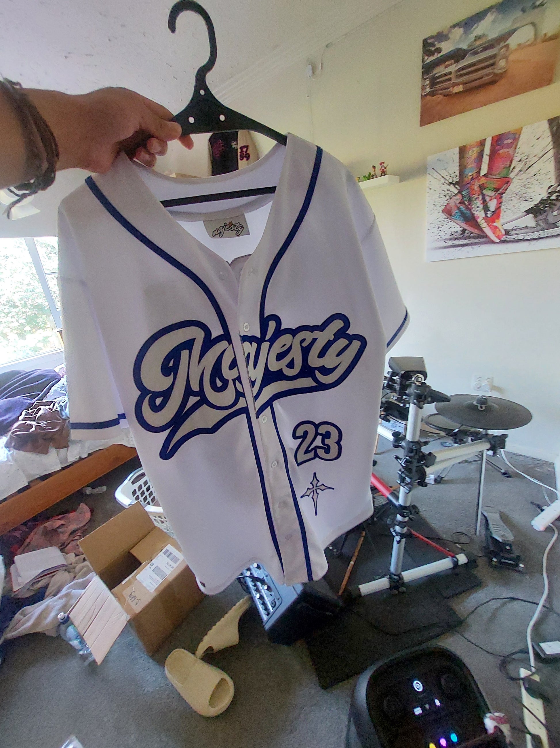 I designed these baseball jerseys with my logo Majesty on them. Don't know why but I just like baseball jerseys. There's only 5 left so I thought may as well sell them out fully!